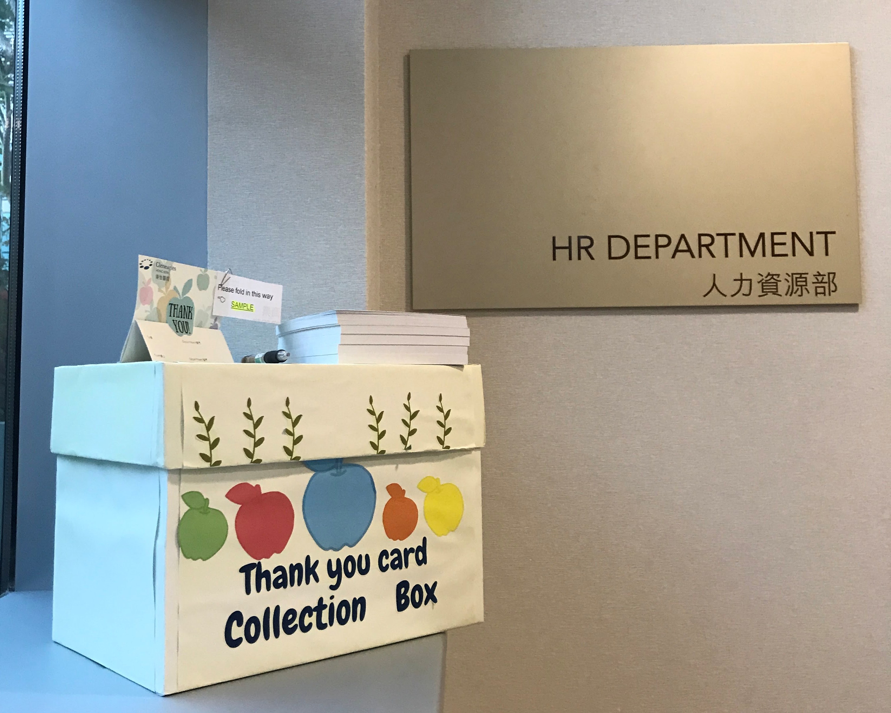 The launch of the heart-warming “Thank You Card Initiative” comes as a sweet and convenient way to express your thankfulness to those who have lent us their helping hands. All you have to do is to take the thank-you card that Human Resources Department (HR) has distributed to you, write down your message and basic information of the person who you want to thank and pop it into the collection box at HR (5/F). Delivery is scheduled every Tuesday, with the first two batches already sent to your “angels” over the past weeks. More than 200 cards have been received so far. So don’t be shy, pick up a card today and let your colleagues know their help means something to you!