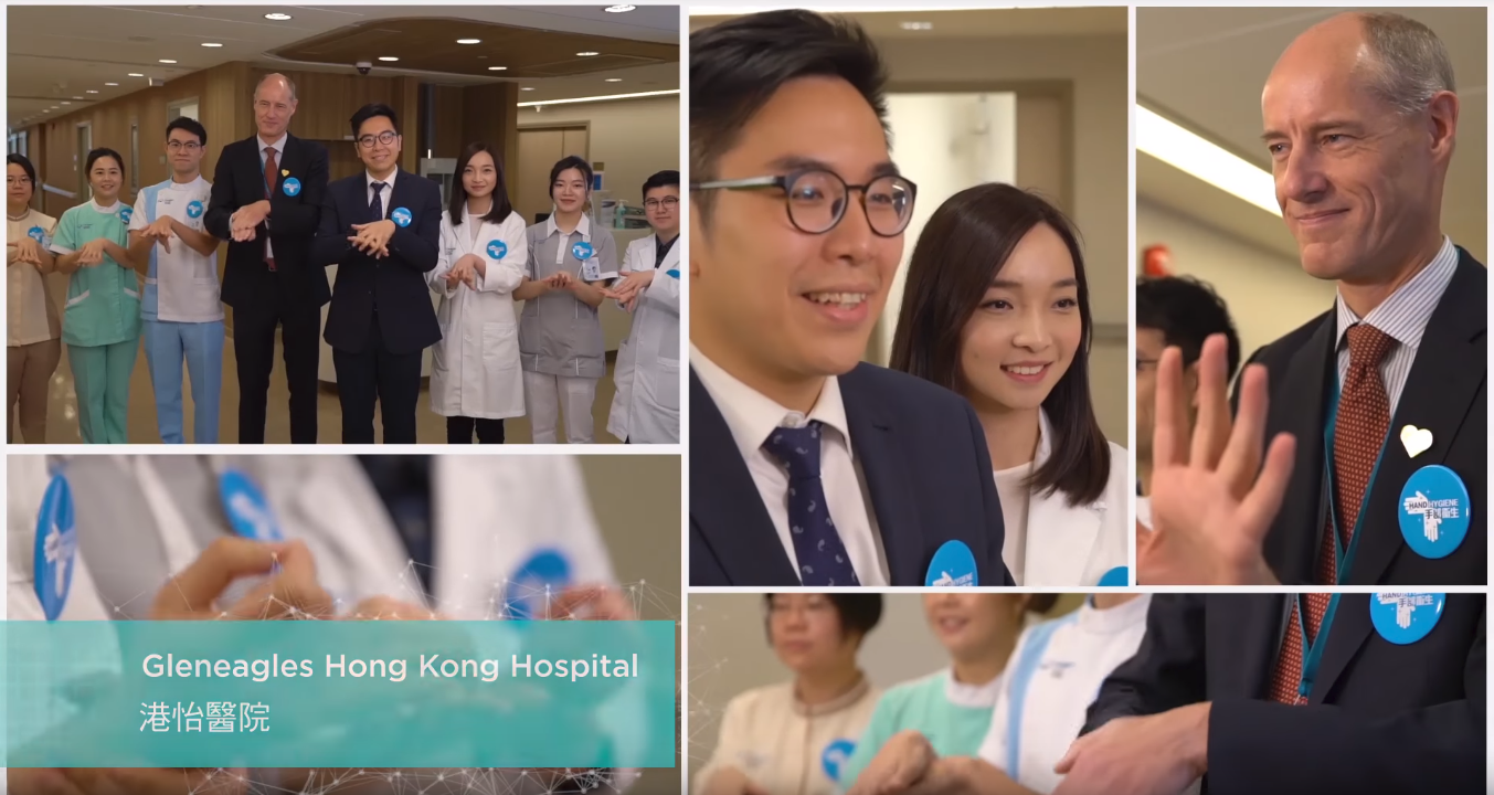At the kickoff, GHK CEO Mr Dirk Schraven said that GHK will continue to uphold the three main factors of promoting and enforcing hand hygiene at the hospital, which include professional training, managerial support, and behavioural awareness. Mr Schraven, together with some colleagues, also took part in the shooting of a promotional video produced by CHP.