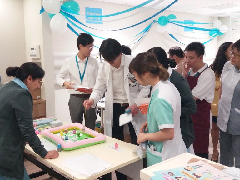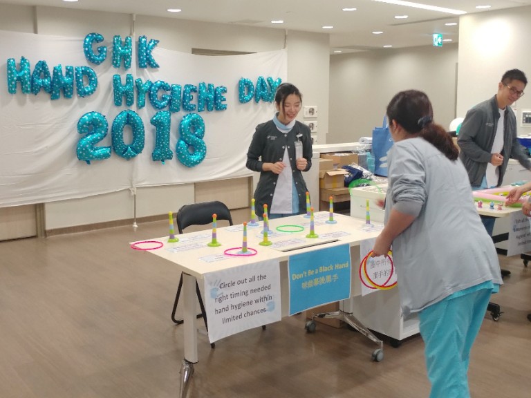 To support the campaign on promoting proper hand hygiene spearheaded by the Centre for Health Protection (CHP) under the Department of Health, our Infection Prevention and Control Department organised the first GHK Hand Hygiene Day on 16 May by staging a number of educational booth games at GHK to promulgate among all staff the key concepts of proper hand hygiene such as the “7 steps for washing hands properly” and the “5 moments of hand hygiene”.
