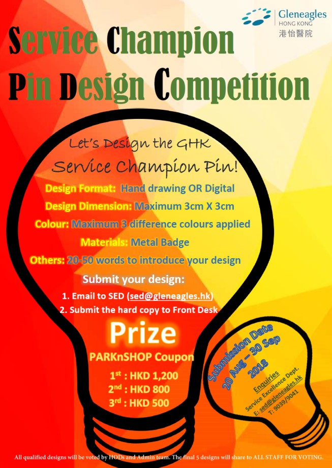 Earlier on, staff had the opportunity to showcase their creativity in the Service Champion Pin Design Competition. The contest serves as a prelude to the upcoming Service Champion Programme which aims at recognising colleagues who demonstrate excellent service to our patients and visitors. The winning design will be produced into metal badge and awarded to our Service Champions. Look out for the results of the competition!