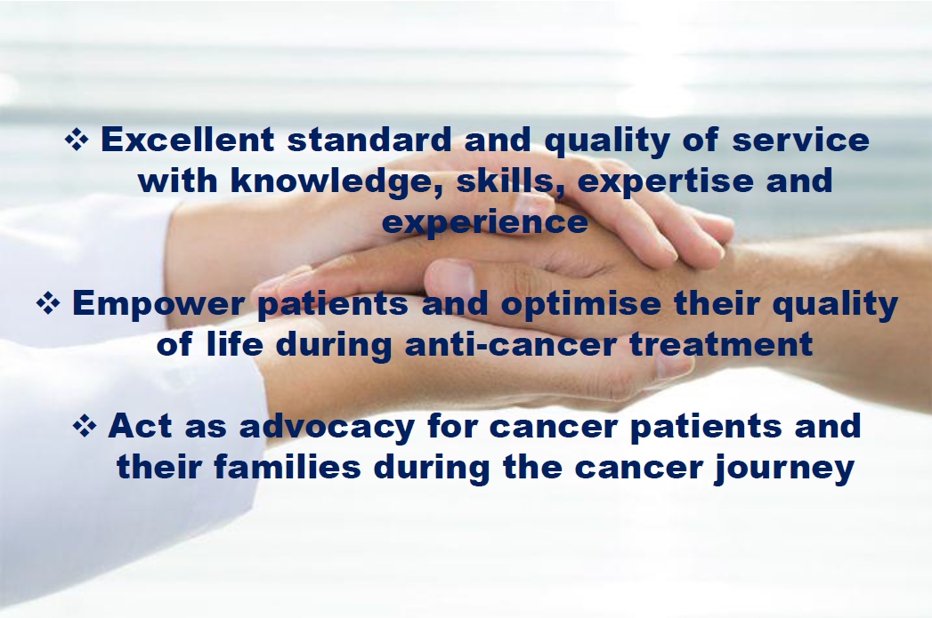 A mission won’t be meaningful if we don’t live it. And it is important that what we value and aspire to achieve are promoted and realised at departmental level. The mission statements which Chemotherapy Centre has recently shared have aptly communicated not only GHK’s mission, but also Gleneagles’ brand essence.