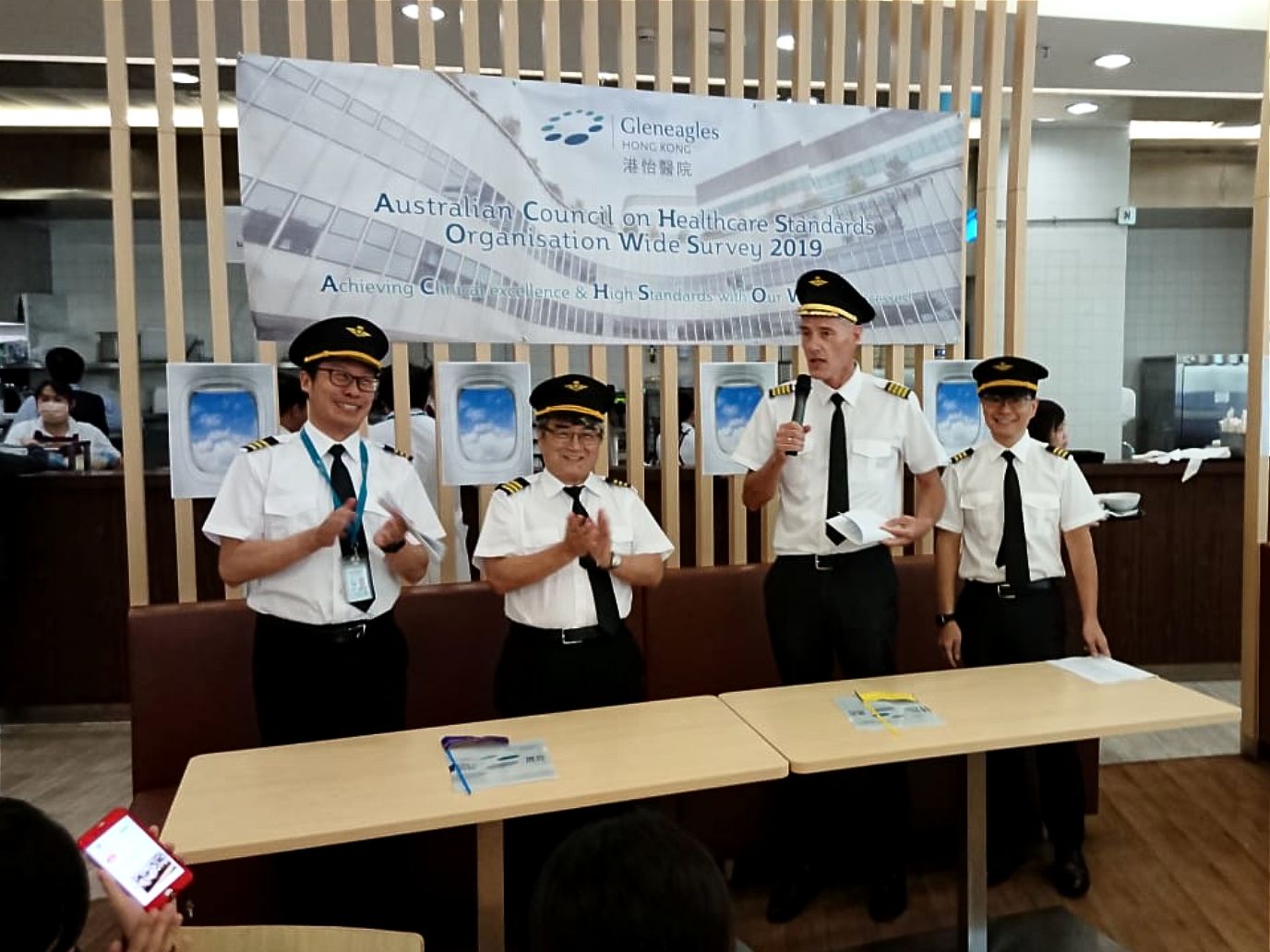 After some 20 months of preparation by various departments, the five-day Australian Council on Healthcare Standards Organisation Wide Survey (ACHS OWS) will commence in the week of 4 November 2019. To help raise staff’s awareness of the upcoming accreditation exercise, a series of promotion days was launched at Gleneagles Bistro on 15 August. At the kick-off event, CEO Dirk Schraven, COO Dr Kenneth Tsang, CMO Dr Victoria Tan, HKU’s Professor Joseph Lui and General Manager of Operations and General Administration Mr Wilfred Chiu facilitated the Q&A session while communicating to colleagues the progress and timeline of the ACHS OWS. Game booths were also set up to instill in staff knowledge related to the accreditation and quality and safety.