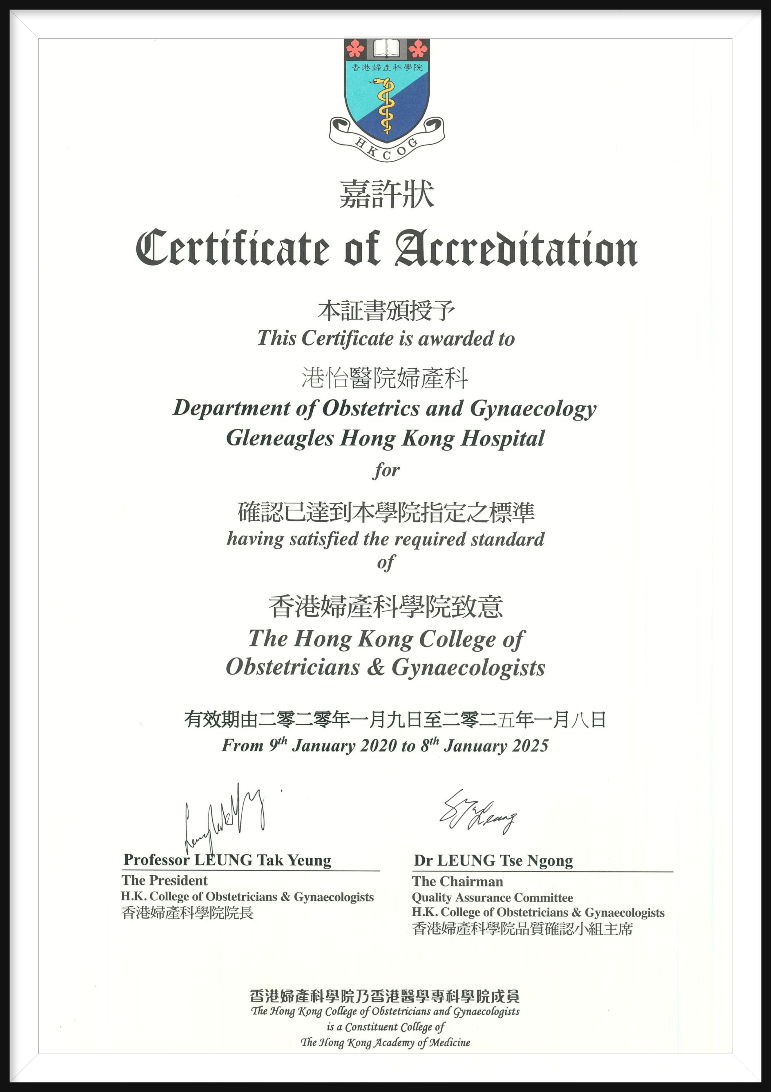 Our Obstetrics and Gynaecology service has recently been awarded the Certificate of Accreditation by the Hong Kong College of Obstetricians & Gynaecologists, making GHK one of the 14 public and private hospitals in Hong Kong that have achieved the accreditation.
