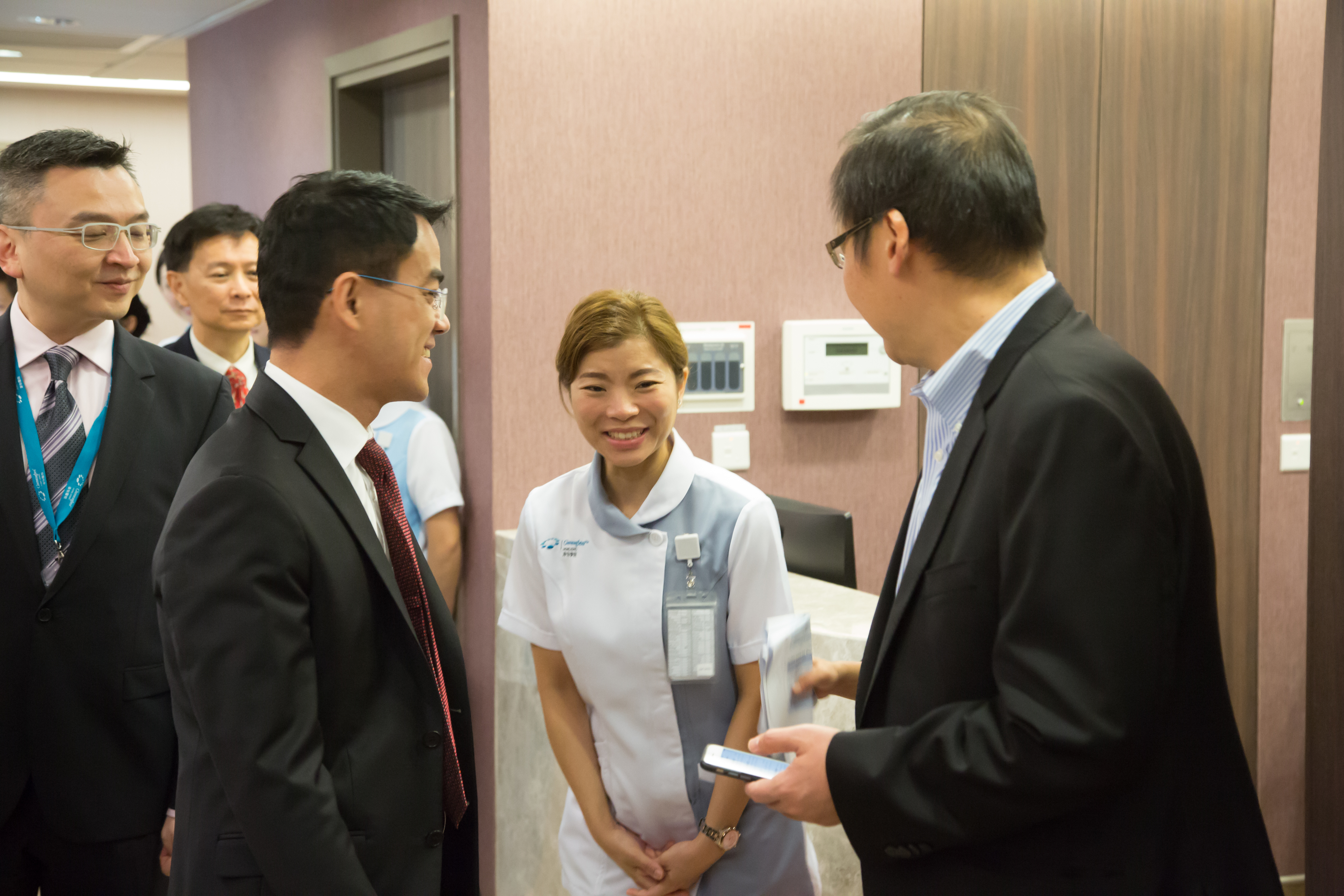 Dr Tan See Leng, Group Chief Executive Officer and Managing Director of Parkway Pantai, Mr Tsang Yam Pui, Chief Executive Officer of NWS Holdings Limited, and Professor Gabriel Leung, Dean of the Li Ka Shing Faculty of Medicine of The University of Hong Kong, greeted staff in different departments on this important occasion, extending their appreciation and support to staff who are entrusted with the mission of making GHK a top-notch healthcare facility in Hong Kong through delivering excellent clinical outcomes and patient care.
